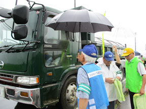 自転車利用者に対し、啓発ポップを掲示しながら安全運転を呼びかけました。