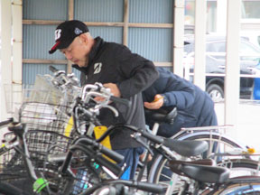 - 市立旭岡中学校自転車置き場にて、警察署・市役所・安全運転管理者協会とと連携して、自転車指導を行いました。