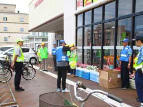 - 幸町プラザ裏手の信濃川沿い市道にて、通過するドライバーに対して交通安全のチラシ等を配布し「歩行者保護、飲酒運転根絶、過労運転防止」を呼びかけました。